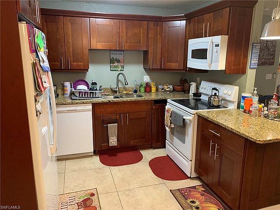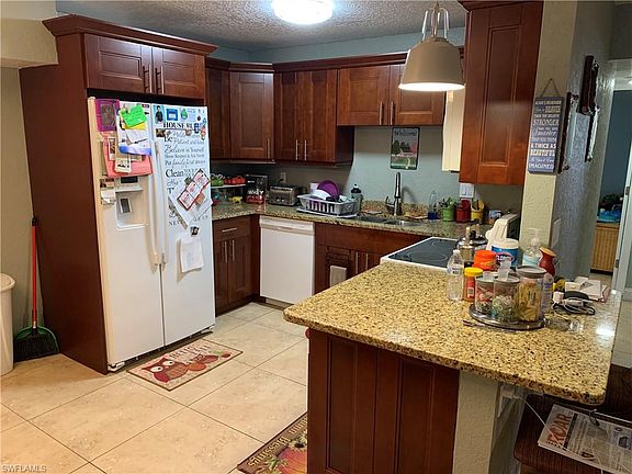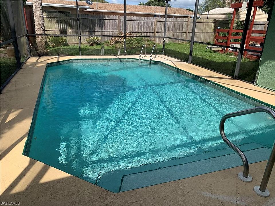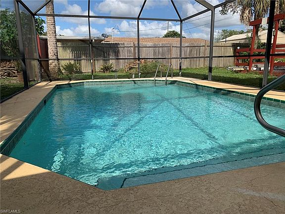 One of the lowest priced pool homes in Lehigh! Updated 3 bedroom 2 bath + den with large below ground pool. Over 1,600 sq ft of living area! City water and city sewer, Upgrades galore with tile throughout the home, granite counter-tops, new soft close kitchen cabinets, re-tiled bathrooms, new AC in 2017, large shed with window unit AC that could be converted into living space, indoor laundry room with laundry tub, breakfast bar in kitchen, walk in closets in master bedroom with private bathroom, fenced backyard, large wooden deck in backyard for entertaining by the pool.