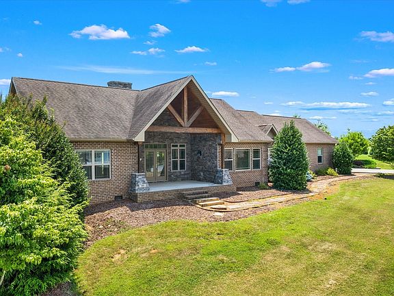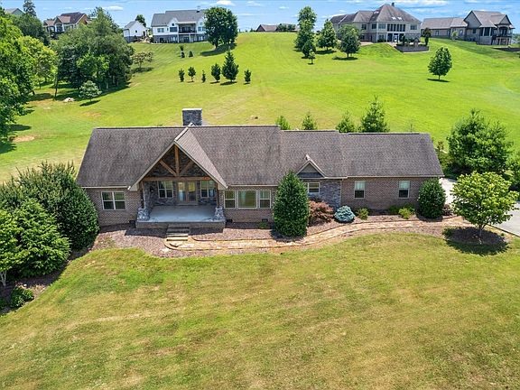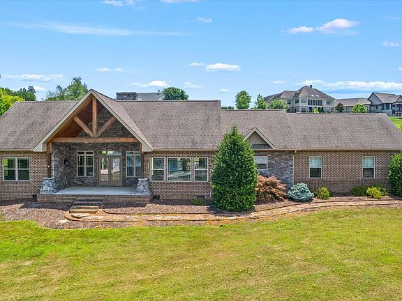 Gorgeous one level custom home with incredible lake and mountain views! Located on 1.12ac corner lot in Grande Vista Bay, this is a one level all brick/stone home that offers low maintenance lake living. 3br/2ba split bedroom plan is open and spacious. The upgraded kitchen is finished with granite countertops, tile backsplash, stainless appliances, and a huge island w/ breakfast bar. Hardwood flooring flows into the large living area with a stacked stone fireplace. Both front and back of home have massive covered porches with tongue and groove ceilings and give the buyer both privacy and stunning views. Separate laundry room w/ sink leads to huge oversized two car garage. Community amenities include a large luxury clubhouse, pickle ball courts, bocce court, pool, and multiple boat slips.