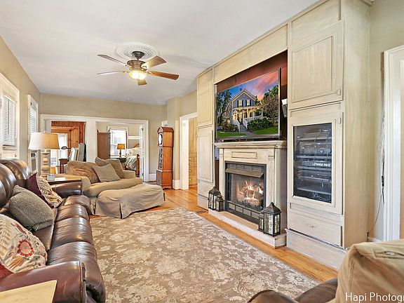 Priced to sell! This vintage-style home nestled on a corner lot on minutes from down town Marengo and I-90 is everything you have been looking for. Surrounded by a white picket fence and blooming perennials, this home offers exceptional curb appeal. Rest easy on the swing and enjoy your morning coffee or late night wine on the enchanting, covered porch! The main floor exudes timeless features that offer modern simplicity while maintaining its beauty and charm. Enter through the front door and be welcomed by beautifully preserved hardwood floors, fire place, and built-in cabinetry! Spacious formal dining room with built-ins offers room for all of your gatherings with custom built dining table that stays for the new homeowner to enjoy! The recently renovated (2020) u-shaped kitchen, will truly wow you in size! Huge center-island with granite countertop is perfect for all of your get-togethers still leaves room for eating area! All stainless steel appliances stay for the new homeowner to enjoy! New refrigerator installed in 2024! Timeless butcher block countertops make this a true chef's kitchen. Step out onto the deck and enjoy views of the spacious backyard with built-in fire pit! Den on the first floor offers additional space for an office, play room, or 3rd bedroom if needed. Laundry room doubles as a ginormous mudroom connecting to the attached garage! 1 car garage is much deeper than standard, offering a tremendous amount of storage space! New garage door and motor installed in 2024! Full bathroom on the main floor was recently updated with a new vanity and fixtures in 2023 and connects to 1st floor bedroom, making it excellent for guests! Second floor offers a spacious loft adjacent to the private primary suite offering additional living space! Primary suite is a generous size, offering a walk in closet with built-ins including a custom shoe rack! Primary full bath offers a huge, whirlpool tub, vanity with double sinks, and separate shower! This home truly has it all! New chimney installed in 2024! New water heater installed in 2024!