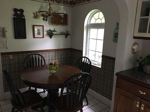 Charming New England style 2 Story home with partially finished walk-up attic. Large living and dining room with gleaming hardwood floor and exceptional natural light. Warm and cozy den with fireplace, kitchen with casual dining, steps from covered out door dining and entertaining, seasonal sunroom, first floor 1/2 bath, 4 spacious bedrooms with hardwood floor and full bath, finished room in the attic could be made into a wonderful master suite. Basement with laundry, 2 detached garages. You will love this home and it's private park like setting!
