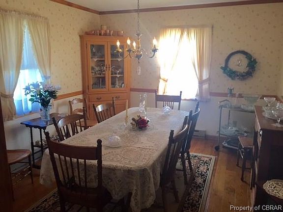Great one owner home built by local custom builder. Close to Deltaville and marinas plus shopping yet not in a subdivision. Home features wood floors in LR and DR which both can be closed off from rest of home when not in use with pocket door. Nice entry foyer, den with Knotty Pine paneling and carpet. Kitchen is eat in and has the original cabinets, large walk in pantry that also houses the washer hook up. This room has a brick chimney for a wood stove, three season porch off rear of home. Detached garage with workshop area and attached lean to with concrete floor for lawn equipment.