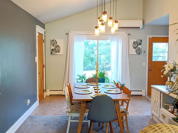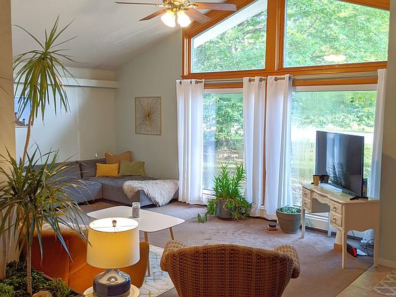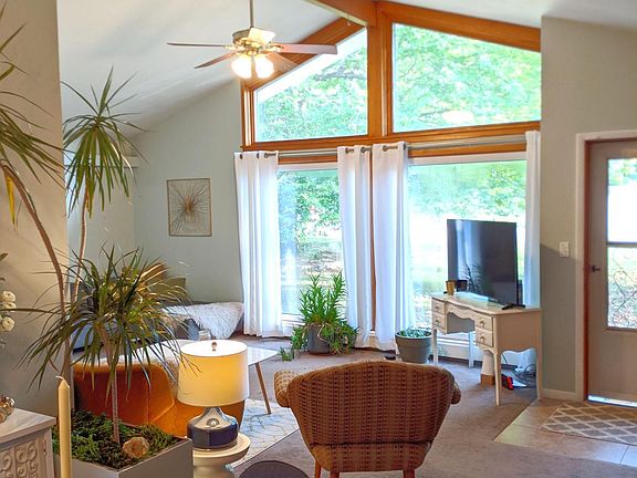 Move in ready, Mid Century Modern ranch on nearly an acre of land in town, next to Wilson Park! Upstairs has a vaulted ceiling living and dining room, which connect to the open and bright kitchen. There are 3 bedrooms, a full bath with double sinks and hardwood flooring in beds and hall. Brand new drywall on ceiling and walls, fresh paint and flooring in lower level walk out. Walk out has laundry room, bedroom, 3/4 bath, family and rec room! Plenty of storage in the lower level, plus attached 2 car garage and bonus 3rd car garage!