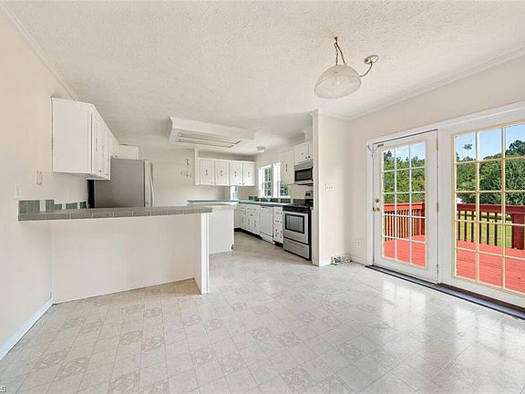 Almost an acre in rural setting! Roomy home with spacious primary bedroom/bathroom suite. In suite office or sitting room in primary bedroom. Lots of storage in primary bath with deep garden tub. Two eating areas off of kitchen. Front porch and deck to enjoy the outdoors. Stainless refrigerator, oven, and microwave. Living room and den with fireplace. Freshly painted in neutral color.