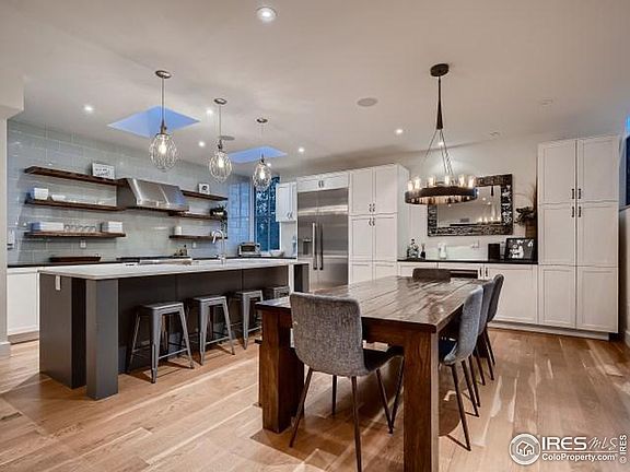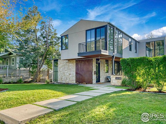 This stunning North Boulder Park home belongs on the cover of Architectural Digest! Built in 2013, this custom home has beautiful interior spaces, wonderful outdoor living areas and sits on a triple lot. The open concept main level has an elegant kitchen every cook will love. Quartz counters, custom cabinets and Thermador appliances. Main level bedroom and private bath-perfect for a home office or mother-in-law suite. Huge glass sliders lead to your cool outdoor living space with cozy gas firepit. Upstairs behind the slider barn door, you'll find a private hallway leading to the primary bedroom suite with a large bedroom, luxury bath and walk-in closet. Plus two add'l bedrooms on the second level (one with a climbing wall and secret loft!) and a full bath. The walk-out lower level (private entrance) has a rec room for your workouts plus another bedroom and bath-perfect for au pair quarters or when your guests visit in Boulder. Big, fully fenced yard for your furry friends. Just a short walk to Mt. Sanitas trails, two blocks to North Boulder Park or a quick stroll to Whole Foods/Ideal Market. You'll love this 'new millennium modern' home. 9600+ square foot lot size makes this home eligible for the City of Boulder's new ADU program.