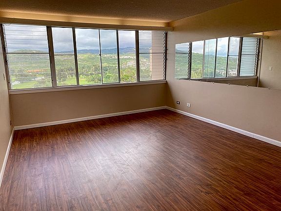 2 bed, 1 bath Condo on the 8th floor with a beautiful view of the amazing Honolulu Country Club. New vinyl flooring and freshly painted 5 min drive to the airport, 10 min walk to Salt Lake shopping center! Water, electricity, sewage, included. Unit is a corner unit! (No one walking by). A/C not available. 2 assigned parking spots! 1 covered, and 1 uncovered. Street parking is available and metered parking lot close by. 2 open houses available on Jan 22, Monday from either 3 - 5 Renter responsible for setting up their own internet. All other utilities are included. Small pets under 8 lbs are allowed if registered with the HOA.