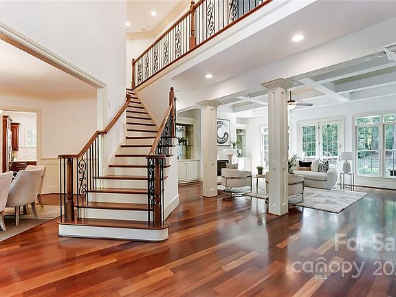 Beautiful cul-de-sac home in highly sought after Highgate neighborhood in the desirable Weddington School District. Upon entering, you're greeted by a grand staircase & gorgeous Brazilian cherry hardwood floors. No detail was overlooked, including the extensive crown molding and wainscoting throughout. The oversized family room boasts a fireplace and built-ins, as well as, coffered ceilings with large windows. Gourmet kitchen has ceramic tile, granite countertops, & gas cooktop. Retreat to the keeping room where you can enjoy a 2nd fireplace. Phenomenal owner's suite w/ circular sitting room & dual walk-in closets . Main level guest suite boasts a full, private bath. There is plenty of parking and an oversized 3-car courtyard garage. Entertain in your private, tree-lined, fenced-in backyard. You will love your paver patio with bar and grill, and cook-top. Enjoy brisk fall evenings next to your woodburning fireplace.