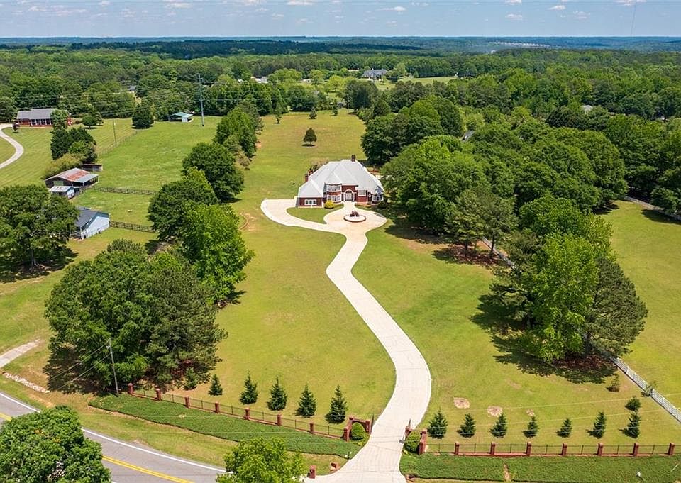 Experience the pinnacle of privacy and luxury at this gated, four-sided brick estate, nestled on 5.78 acres of beautifully manicured grounds. Spanning over 5,000 square feet, this elegant residence offers timeless design, expansive living spaces, and a lifestyle of unparalleled serenity. A long, picturesque drive winds through lush landscape, leading to a resort-style retreat that feels worlds away. Inside, a grand two-story foyer welcomes you with soaring ceilings and natural light pouring in through walls of windows. The dramatic great room centers around a fireplace and flows seamlessly into the open living and entertaining areas. The chef’s kitchen is both functional and refined, featuring stainless steel appliances, an oversized island, custom cabinetry, pantry, and a sunlit breakfast area with views of the resort-style backyard and family room. Step outside to a private oasis with a heated in-ground pool, outdoor shower, and multiple patios and pads—ideal for entertaining or quiet relaxation. The main-level primary suite is a true sanctuary, filled with ample windows and offering his-and-her closets and a spa-inspired bath with dual vanities, a jetted tub, and a separate shower. A dedicated office completes the main level with abundant natural light and tranquility. Upstairs, three generously sized bedrooms are complemented by renovated bathrooms featuring new tiled showers and flooring, as well as a stunning enclosed brick veranda—an elegant covered terrace offering panoramic views of the estate. Additional highlights include a circular driveway, expansive parking, an electric vehicle charging station in the garage, and endless potential for gardens, equestrian facilities, or future expansion. This is a rare opportunity to own a private, gated estate where elegance, comfort, and natural beauty come together in perfect harmony. Home is virtually staged.