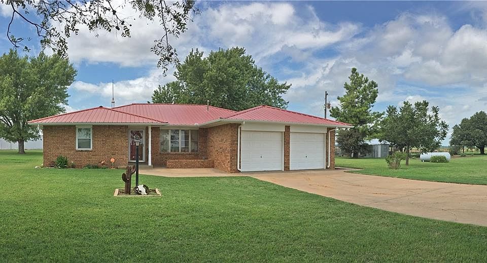 Precious little piece of the country!! Great home with 1.90 MOL acres and 40x80 Quonset hut barn. This home has 3 good sized bedrooms and 2 living areas with many updates throughout like updated windows, metal roof and gas log fire place to name a few. New vinyl wood floors in the kitchen with nice sized pantry. The mud room includes the laundry room and a 3/4 bath, there is also a flex space that could be used for multiple uses. Relax and watch a beautiful Western Oklahoma sunset in the screened in back porch. This property also has a chicken coop, fruit tree orchard and a large garden area. Must see!! Call today for your showing!!