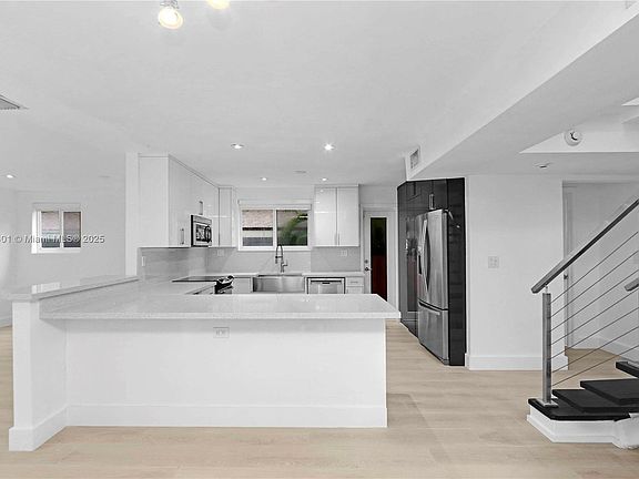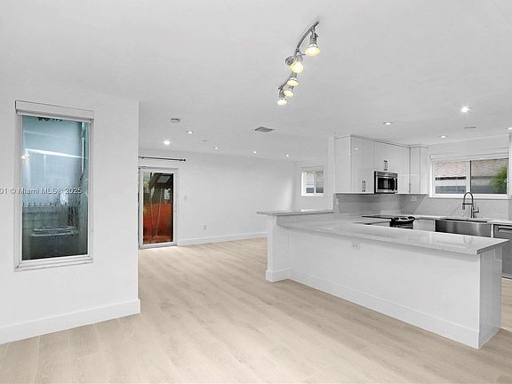 This reimagined California contemporary offers 4 bedrooms, 2.5 baths, and a versatile layout with three bedrooms upstairs and a guest suite on the main level. Expansive windows highlight vaulted, wood-beamed ceilings, open living and dining areas, and a striking floating staircase. Updates include impact windows/doors, a sleek chef's kitchen, new flooring, spa-inspired primary bath, and custom walk-in closet. Detached parking for 2 3 vehicles. Prime location near CocoWalk, cafes, boutiques, parks, and minutes from Brickell, Coral Gables, and Key Biscayne. Enjoy tranquil Grove living with city convenience. Credit check, police report, and 24-hr notice required.