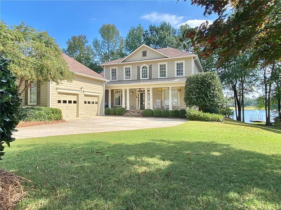 On the Lake in Mirror Lake? Yes! The views are breathtaking looking out from the back porch, you can fish/ kayak & canoe from your own backyard. Mirror Lake has 36 holes of golf, a 96 acre Lake, Pickleball, swimming and tennis, walking trails, parks & is only 3 minutes to I-20! Featuring a Primary Bedroom on the Main Level, the design is just what you are looking for with a spacious 2 Story Great Room, a Formal Dining Room & a Designer Island Kitchen with granite countertops, a walk in pantry & a Main Level Mud Room*Upstairs you will find an Office/ Loft along with 3 good sized Bedrooms and 2 more Full Baths*Beautifully Landscaped and maintained inside and out, you will love and feel at home when you arrive. Freshly painted exterior too*The backyard offers a park like setting* The Primary En Suite Bath has a Jetted Tub/ Shower/ Double Vanities and a spacious walk in closet.