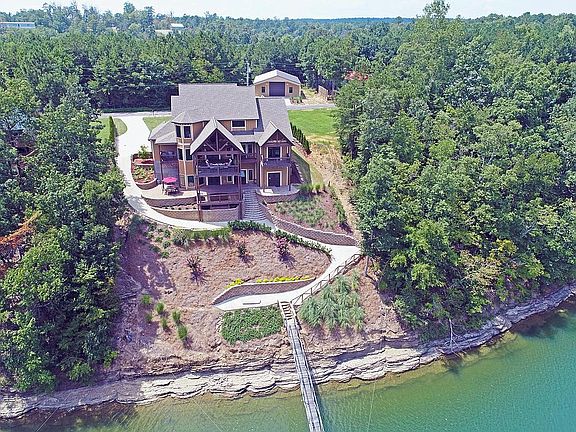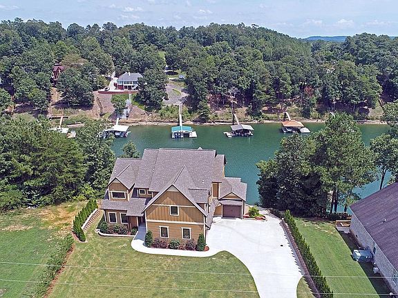 Beautiful custom built Craftsman style home on the much desired gorgeous Smith Lake located just 10 minutes from I-65 on the Cullman side. This home has 6 bedrooms, 5 full bathrooms and 2 half baths. Hardwoods, tile and carpet throughout. Master on main level with private balcony overlooking the water. There are 4 bedrooms upstairs, 3 full baths, laundry room and media room. Basement has 1 bedroom, full bath and half bath. Beautiful open kitchen with custom cabinets, granite counter tops, double built-in refrigerator/freezer, double oven, gas cook top, built-in microwave, walk-in pantry and plenty of storage. There is a covered grilling deck located just off of the kitchen. There is a dining area with fabulous views of the water. Main level has laundry room, office and a huge covered deck offering a spectacular view of the water. Great area for entertaining or just kicking back to watch TV. Full finished basement has custom built bar with built-in refrigerators and specially designed counter tops. There is also a gym, storm room and plenty of storage. Awesome patio area with built-in hot tub overlooking the water. There is a concrete path going from the garages down to the dock giving you easy access to the lake. The single slip covered dock has boat lift, swim platform and 2 PWC ports. There are 2 attached garages, 1 single and 1 double. There is also a custom designed 40 x 60 metal building fully insulated, wired with lights, outlets, garage door opener and RV hookup located across the street. This is the perfect home to make all of your lake living dreams come true!!
