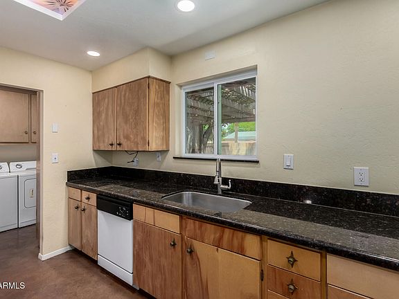 Welcome to Melrose Paradise—a community with a strong neighborhood spirit and a location you'll love calling home. This charming 3-bedroom, 2-bath block construction home offers a smart, spacious layout and thoughtful upgrades throughout. The eat-in kitchen features granite counters, abundant cabinetry, a gas range, electric wall oven, dishwasher, and refrigerator. The skylit great room, kitchen and bathrooms are bright and inviting, with stained concrete and tile flooring. Enjoy a spacious primary suite with walk-in closet, low-emissivity windows, private backyard with grassy play area, and full block fencing for added privacy. The two-car garage includes a workshop area, soft water loop, and a 6x8 attached shed (2023) plus a 10x20 storage shed—perfect for tools or toys. Notable upgrades include copper plumbing, 2017 AC system, 2012 attic insulation and electrical panel. Inside laundry with washer and dryer included. No HOA! Optional membership is available at the Melrose Paradise Recreation Center with pool, programs, and more. You'll love being near Phoenix Mountain Preserve, Christy Cove Park, top-rated restaurants, local coffee shops, shopping, and quick freeway access. Great Community Vibes, Classic Comfort, and Convenient Living!