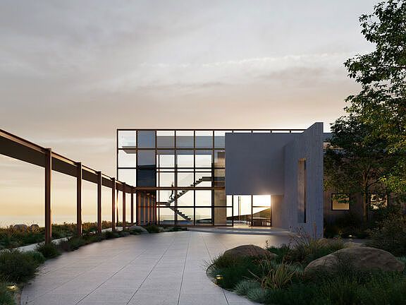 Own one of Malibu's finest and last remaining mountain-top ocean view estates! Sited on over 12 private acres, with soaring jetliner & ocean views, experience the serenity of this gated compound with full LA county stamped plans for a 5,000+ SF residence and guest suite. Developers: Take advantage of the massive upside and build a spec estate on this existing footprint with full LA county approved plans, designed by FAME Architecture & Design. This residence has received approvals for square footage, building volume, and building height from the Los Angeles County Planning Department, exempting it from the restrictions of the Santa Monica Mountains Local Implementation Program, which limits hilltop construction in the area. This presents a rare opportunity to build a home on one of the last remaining developable hilltops in Malibu. The design of the residence fully embraces the dramatic ocean views to the southwest, the vast expanse of skies overhead, and the encircling mountains by thoughtfully dispersing the main house, guest house, garage, and pool across the landscape. These elements are seamlessly linked by walkways that align with the ocean vista, creating a strong connection between the home and its stunning natural surroundings. As you approach the home, a concrete wall floats above the foyer, creating a sense of intrigue by balancing concealment and revelation. Meanwhile, a bronze grid delicately frames the sky above and once inside, leads you to the second-floor primary suite. A covered walkway guides visitors from the guest house to the rear fire pit and deck, offering a moment to appreciate the untamed eastern landscape. Perched dramatically at the cliff's edge, the pool is set apart from the rear deck of the main house, heightening the sense of exclusivity and immersion in the landscape. At the heart of the home, curved glass walls define the living and dining rooms, seamlessly blending indoor and outdoor spaces as they flow into the expansive deck with its panoramic views. Every aspect of the site planning and architecture is orchestrated to elongate movement across the terrain, amplifying the natural beauty of the environment. Simple yet elegant geometries overlap and intersect, creating a structure that feels both sculptural and monumental, yet remains humbly subservient to the natural landscape. Working septic is in place alongside a well, water and utility hookups. Final approval of a Woosley Fire Exemption and permit has been granted, expediting the path to build and saving years of time. Majestic scenery abounds including 360 degree canyon and mountain views with some of the most breathtaking ocean vistas in all of Malibu; quite possibly the most peaceful retreat available today in Western Malibu. This Woolsey fire rebuild project offers the opportunity to build more than 5,000 interior SF across two different structures. Additionally, a flat concrete pad perfect for creating a Pickleball, basketball or tennis court, sits farther down on the property. This estate is an ideal choice for entertaining. Create your absolute dream home and live the Malibu lifestyle to the finest! Approved plans available upon request!