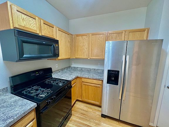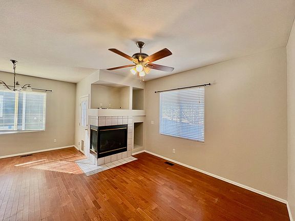 Property features hardwood floors throughout the main level and a 3 sided fireplace in living room. Separate dining area walks out to large fenced in backyard and spacious patio. All bedrooms are on the main level with full bathroom. Master bedroom includes adjoining bath. Washer/dryer in basement as convenience items. Property is located close to Peterson Air Force Base, schools, parks, shopping and more! 12-24 month lease Security deposit must be paid in certified funds. Amount based on credit report findings. 3 Pets--100 lbs No aggressive breeds management approval needed. School District: 49-Falcon Elementary School: Remington Middle School: Horizon High School: Sand Creek