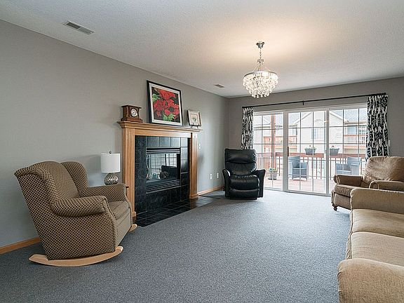 This move in ready middle unit is located on a quiet street, on a cul-de-sac, close to Pharmacy, HyVee, schools, shopping and local restaurants. The main level has carpet and tile floors, and features a fireplace. Also on the main level are 2 bedrooms, 2 full baths and laundry. The kitchen features tile floors, granite countertop, tiled backsplash, new stainless steel appliances, a pantry and breakfast nook. Appliances stay with the home. The master bedroom is located on the main level and features carpet floors and conventional ceiling. The finished lower level features a storage area.Outside you'll find a treated wood deck and porch overlooking Palmer Hills Golf Course. Property Improvements: - Granite Counter Top and Subway Tile - 2018 - Stainless Steel Kitchen Appliances - 2021 - Windows in Master Bedroom - 2019 - Carpet and Tile - 2017 - Entire Condo Painted - 2017