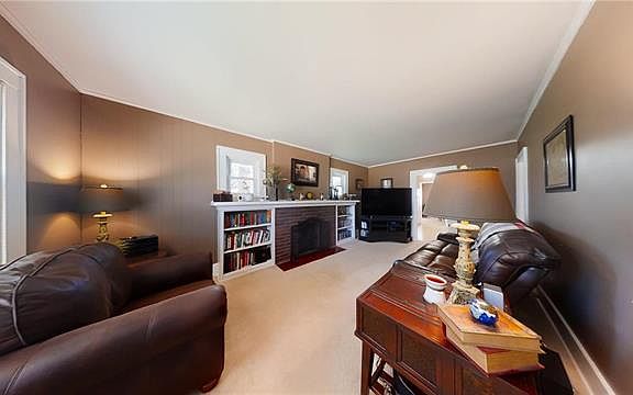 Cute 2 bedroom sitting back off the street. Living room with brick facade wood-burning fireplace surrounded by lovely built-in shelving unit. Kitchen with gas range. Dining room walks out to the private covered deck. Bedrooms with hardwood flooring. Large driveway and 2 car detached garage.