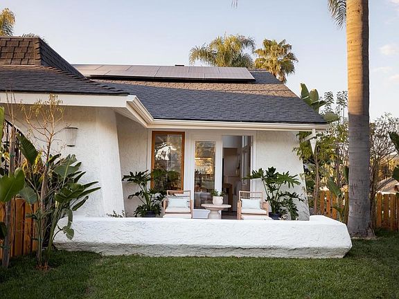 Located in the stunning La Costa Hills this chic 4 BD 2 BA single story corner view lot with pool and resort yard has just been completed inside and out by celebrated designer. Open spacious floorplan with numerous entertainment areas offers both convenience, luxury, and comfort. Handsome cedar 3 car garage door entry, fenced in front play yard off the interior with an inviting patio enveloped in the lush mature landscape and hardscape adjacent to the gated courtyard entry set the stage of what is to come. Brand new home awaits you! The newly skim coated paint palettes , high ceilings, skylights, fireplace, light fixtures to enchant, white oak hardwood floors, solid wood interior doors, brass hardware a highly customized kitchen with Bespoke appliances, walls of glass that display views of the mountains, resort yard with its inviting newly designed pool and mahogany hot/cold outdoor shower and a custom built-in grill station. Well designed stunning cabinetry, terrazzo tile counters, the enchantment of the flip window concept from kitchen to yard. Truly an entertainer’s dream! The completely redesigned primary suite with poolside and Mountain View await with designer tiled shower and soaking porcelain tub, double sink. A/C, new HVAC and solar are just some of the numerous features. Even a usable storage space in the 3 car garage. Brand new washer, dryer and appliances! Hard pressed to find anything better! Perfect for families, a couple, life is a vacation daily! California Dreamin’.