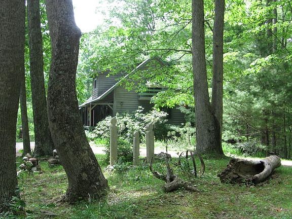 Unique, custom-built, one-owner cape cod style house secluded on 18 acres (2 parcels) close to Blacksburg. This property has approximately a 1500-foot boundary with the Jefferson National Forest, abundant wildlife and easy, private access to the forest. The interior of this house is warm and inviting with spectacular views of the outdoors. A stunning timber frame great room with cathedral ceiling and 16-foot natural stone fireplace opens to a covered deck overlooking the garden. A solarium is also located off the great room. A wood stove is centrally located on the main floor providing comforting heat on chilly winter nights. Many recent improvements include remodeled kitchen, gas furnace, Rinnai on-demand water heater and much more. Lower walk-out level is finished and been used as a guest bedroom with a full bath and access to a deck extending into the woods. A utility room with washer & dryer hookups and extensive wire shelving along with a large unfinished room are located on the lower level. With three large decks, a front porch and balconies off each bedroom, this house offers extensive views and outdoor living. The established gardens boast many perennials and an easily maintained water garden. Several outbuildings including a 3-bay barn with a loft are on the property. The home was once operated as a successful B&B and is wired for an auxiliary generator. The possibilities are many for this property: comfortable, cozy home for country living ~10 minutes to Blacksburg; weekend retreat; B&B; possible pasture for horses; potential to build more homes or cabins on the property. A Ford tractor with 7-foot blade is optional. Property is zoned as A-1 Agricultural District in Montgomery County. County tax assessment for the house and 5 acres is $244,000. The 13 acre parcel is taxed separately at $104,500. The barn and home improvements are not included in the assessments. Viewing by appointment only. Contact the property owner; phone number at bottom of the listing. Buyer agent’s welcome with commission negotiated.
