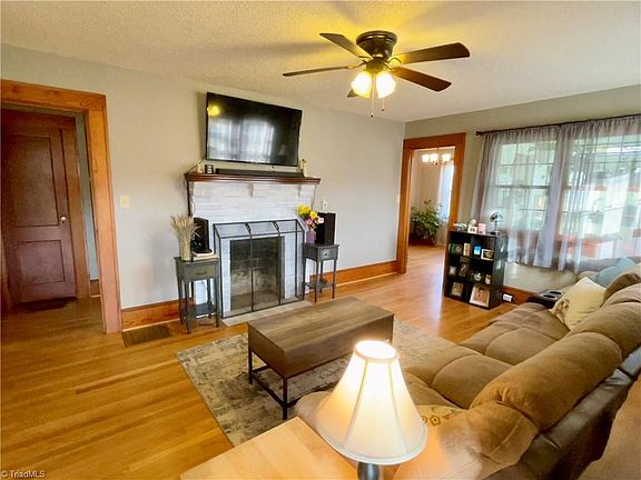 BUYER HOME WARRANTY Adorable home in State Road ,NC. This charming home is in excellent condition. Beautiful hardwood floors, updated kitchen with solid wood cabinets and main level laundry/mud room. Glass panels French doors and arched door openings reflect the era of this well built home. You will enjoy the sunroom and quaint dining room along with a fireplace in the living room. The bath has been updated and the roof is recent (2015). One car garage and two out buildings in the back. Elkin City School District but no city taxes located in desirable Poplar Springs Community. 1.72 +/- acres.