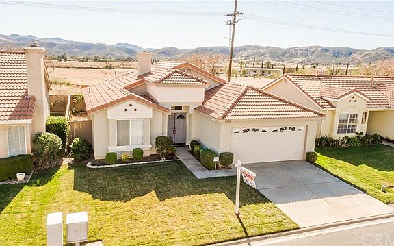 This is a Gated 55+ and over community. Beautiful 2 bedroom, 2 bath home, placed between the San Gorgonio Mountains and the San Jacinto Mountains. Perfect for the downsizing couple. Amenities include; Clubhouse, billiards, library, exercise room, large ballroom, outdoor pool complete with spa and patio, tennis courts, shuffle board, and walking trails that weave through the community. Conveniently located to Interstate 10 connecting to Palm Springs and Los Angeles. Active adults looking for a strong, tight knit, friendly community will love this. New copper piping from the street to the main water line shutoff, new exterior paint, and vinyl patio cover. Low, association dues.