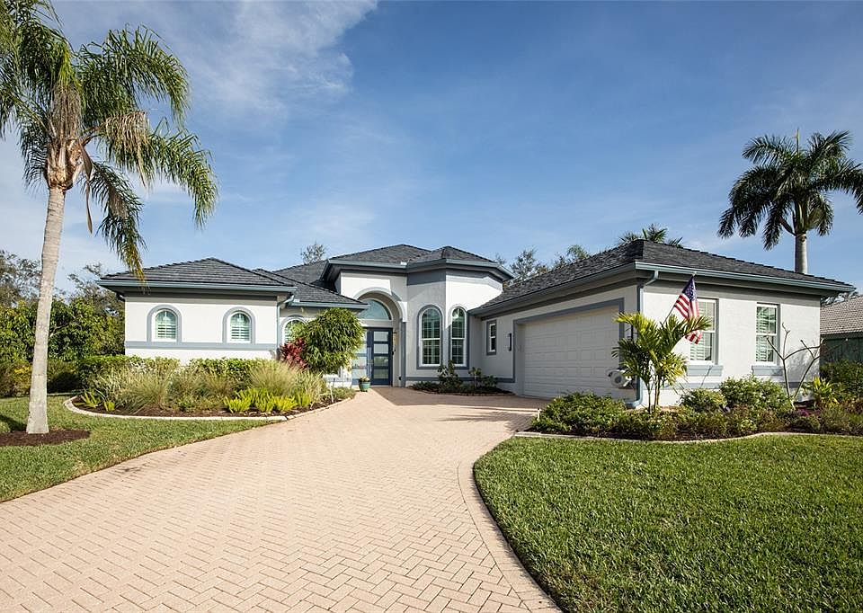 Experience desirable Florida living in this well-appointed Covington Estate Home located in Riverside, an exclusive, privately gated community within the sought-after Riverwood Golf Course neighborhood. With a NEW ROOF and countless upgrades, this home is ready for you to move in and enjoy! Enter through the grand 16-foot foyer with elegant arches and pillars, and be greeted by a space filled with natural light and fine craftsmanship. The 12-foot tray ceilings, quality laminate flooring, crown molding, plantation shutters, and custom niches all come together to create a warm, comfortable ambiance. The living room is a true highlight, featuring telescoping sliding doors that seamlessly open to the outdoors. Step onto the spacious brick lanai and dive into your heated saltwater pool with cascading water features—your own private oasis under the Florida sun. The chef’s kitchen, open to the living room, is both functional and stylish, boasting solid wood cabinets, granite countertops, a center island, breakfast bar, stainless steel appliances (including an induction range), and a tiled backsplash with under-cabinet lighting. The cozy dining nook with aquarium-style windows offers stunning views of the pool area, while the formal octagonal dining room, complete with a coffered ceiling, is perfect for entertaining. The split floor plan ensures privacy for all. The primary suite is a retreat in itself, featuring a coffered ceiling, a custom walk-in closet, dual sinks, a garden tub and a tiled walk-in shower. One of the three guest rooms includes an ensuite bathroom with pool access, while the additional guest rooms share a thoughtfully designed bathroom. The den/office provides a quiet space to work or unwind. Additional highlights include a 50-year transferable warranty on the roof, roll-down hurricane shutters, impact-resistant windows, a reverse osmosis water system, a water softener, new lanai screens, and a full laundry room with storage and a sink. An oversized two-car garage adds convenience and extra space. Living in Riverwood means access to unparalleled amenities, including a highly acclaimed par-72 championship golf course (based on availability), a resort-style pool with lap lanes, a state-of-the-art fitness center, and six brand-new pickleball courts. Tennis enthusiasts will love the six Har-Tru courts, and outdoor adventurers will appreciate being just minutes from world-class fishing, boating, dining, and shopping. Situated perfectly between Sarasota and Fort Myers on Florida’s Gulf Coast, this home is a true gem. Don’t wait—schedule your private tour today and make this dream home yours