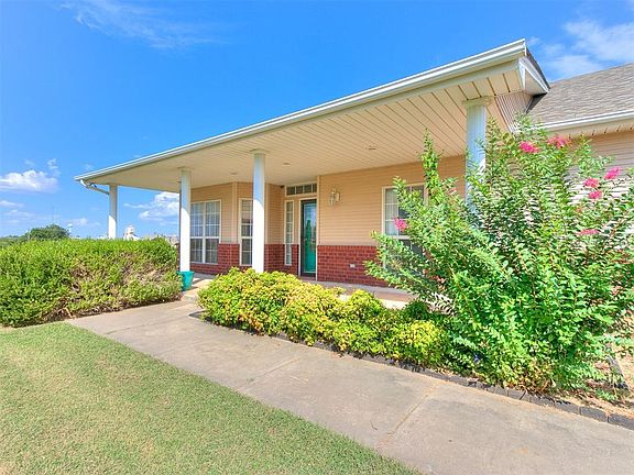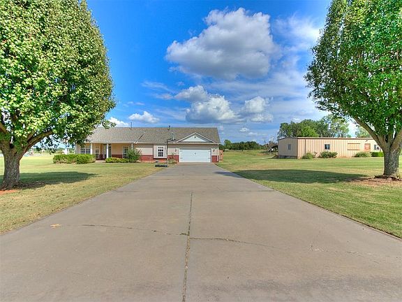 Could be an excellent Horse Property! Amazing location with 5 Acres and a nice Home, in-ground pool, shop, 2 water wells and 2 septic systems. Enjoy your sunrises and sunsets under your front and back covered porches. Just minutes from Midwest City and just over 2 miles from Tinker. Desirable Choctaw Schools (very possible to transfer to Carl Albert) as well. The Kitchen has solid oak cabinets, living and primary bedroom have vaulted ceilings. Primary has a HUGE walk-in closet & walk-in shower plug jetted tub. Large laundry with sink and tons of storage. Roof is only 1 year old as well. Shop is approximately 25 x 50. Land goes way back to where the gravel road & church are. At the back of the property there is an additional water well, septic and power. Don't miss this rare opportunity.