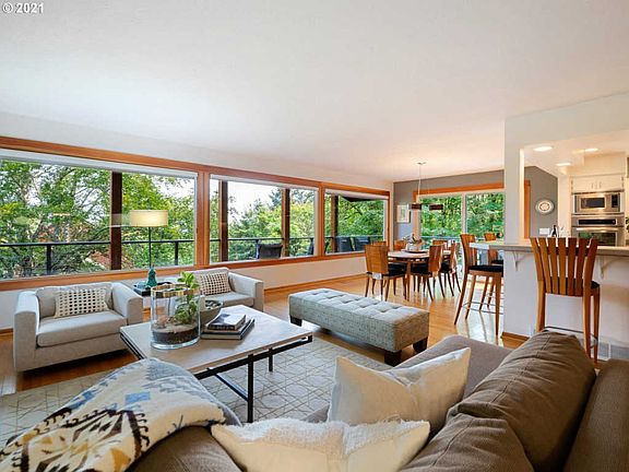 Portland Heights "tree house" w/territorial views on 1/3 acre! Dramatic wall of windows overlooking Marquam Nature Park. The ultimate in privacy & serenity! Built to entertain w/open concept LR/DR/kitchen. Two levels of wrap around Ipe decks to dine alfresco! Updated kitchen & baths; lrg fam rm + bonus rm; 2 frplcs; hrdwds; newer: Anderson windows/doors, furnace/heat pump, AC & plumbing! Abundant windows; Street is part of walking trail #6. 10 min to dwntn/OHSU/NW shops! [Home Energy Score = 7. HES Report at https://rpt.greenbuildingregistry.com/hes/OR10188177]