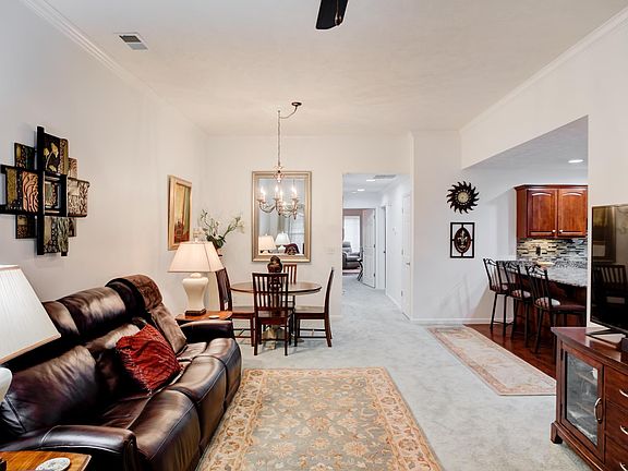 Welcome to this stunning all-brick condo located on Evansville’s highly sought-after east side, offering convenient access to the amenities along north Burkhardt – from shopping and restaurants to hospitals and more! This well-maintained single level condominium boasts an attached 1-car garage with built-in shelving for extra storage. Step inside and be greeted by a spacious living room with soaring ceilings, crown molding, and brand-new carpet (2024). The upgraded kitchen features beautiful granite countertops, a breakfast bar, under-mounted lighting, a pantry with pull-out drawers, a new microwave (2024), and updated garbage disposal. The hall bath offers a walk-in shower with a built-in seat and a stylish granite-topped vanity. The impressive owner's suite is equipped with a large walk-in closet, fresh carpet (2024), and an en-suite bath that exudes elegance, complete with a raised double bowl granite vanity and a custom-tiled walk-in shower. Additional living space is provided by the bright and airy sunroom, perfect for a den, TV room, or fitness area, with direct access to your private patio for a peaceful outdoor retreat. The whole-house vacuum makes keeping this low-maintenance home spotless a breeze! Recent upgrades include new carpet and fresh paint throughout (2024), a new HVAC system (2024), and a new dryer, ensuring peace of mind and comfort for years to come. HOA fee covers: sewer, water, trash, exterior insurance, common area maintenance, snow removal, grass mowing, and roof maintenance. Don't miss out on this fantastic opportunity to live in a prime location with all the modern updates.