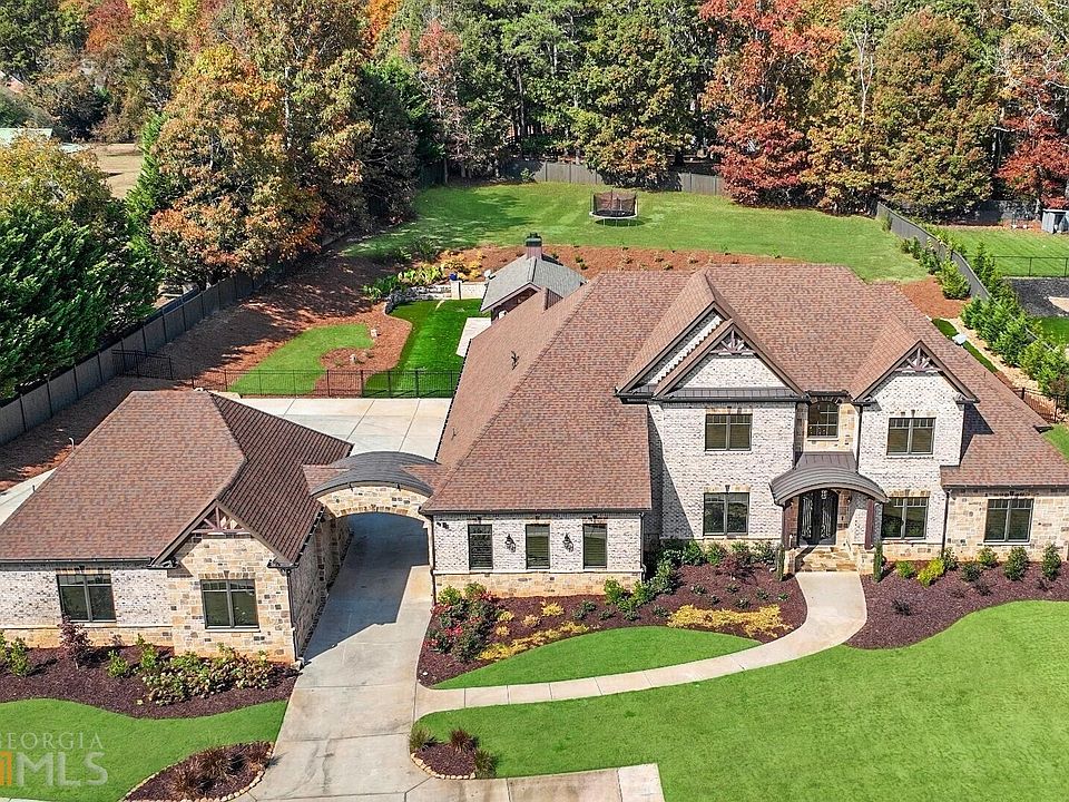 Introducing this stunning gated custom brick and stone estate situated on 2+ acres with an attached guest house perfect for multi-generational living. Main level features a beautiful designed gourmet kitchen with quartz countertops, high-end Jen-Air appliances, abundance of pantry storage and breakfast bar overlooking fireside great room with coffered high ceilings. Private office on main with large dining and wet bar. The impressive oversized master on main with custom en-suite with dual vanity, seamless glass steam shower with dual shower heads, marble counters and three walk-in closets and a private door that leads to your backyard oasis. State of the art home theater that seats 8-12 people. Second level features three bedrooms each with their own private bathroom, quartz countertops, walk-in closet and a huge loft /game room. No expense was spared with the adjoining guest house offering a fully equipped kitchen, beautiful guest suite with large walk-in closet, laundry room, quartz counters and high ceilings. Additional features include 4 car garage with additional parking for 8+ cars and RV parking. Outdoor entertainment area with artificial turf, stone fireplace, 2 kitchens, cabana with bathroom and shower. Gorgeous zero entry pool. Let's not forget the additional land where you can build another home or have an exceptional play area for the kids. This property is located in a prime location 5-10 minute drive to Mall of Georgia, HWY 85 and 985 with NO HOA, top rated schools, and surrounded with some of the best parks in North Gwinnett. This estate is exquisite and a MUST SEE!