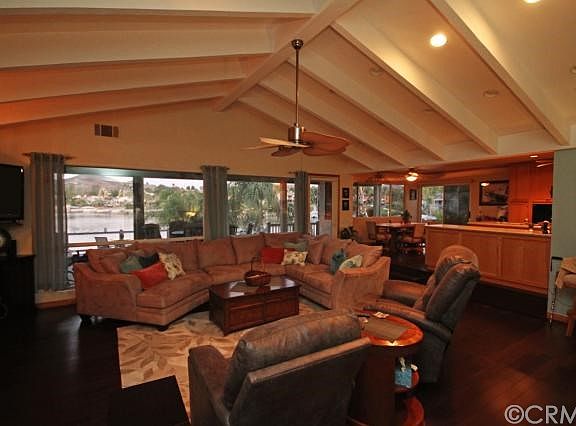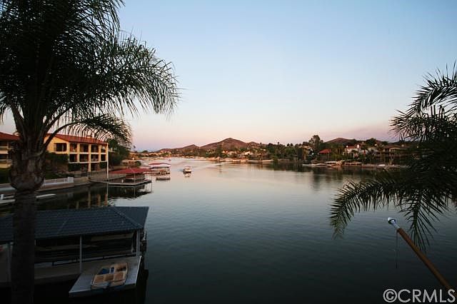 Tucked away in a peaceful cul-de-sac with impressive panoramic lake views in the exclusive community of Canyon Lake. Waterfront Single Story 3 bedroom 2 bathroom home offers a grand entrance with windows throughout, vaulted ceilings, wood floors, and an open floor plan perfect for entertaining. The updated kitchen has solid surface counters, large center island, built-in appliances and is open to the living space. Three spacious bedrooms include a large master-suite featuring a fireplace and sitting area overlooking the lake. The en-suite master bathroom has double vanity, large spa tub, and separate shower. Waterviews can be enjoyed on the multi-level wrap around deck facing 124 feet of water frontage and features beautiful landscaping, a private covered dock with a hydro-lift, resurfaced deck, and Built in BBQ. For convenience and energy conservation this home is equipped with an evaporative cooler, whole house fan and a 500 gal. propane tank that can be used for the water heater, oven, stove and heating. TWO CAR GARAGE PLUS GOLF CART GARAGE. This and much more! It is a must see! PLEASE SEE ATTACHED SUPPLEMENT FOR ALL OF THE HOMES SPECIAL FEATURES BOTH INSIDE & OUTSIDE