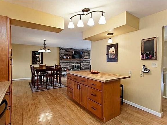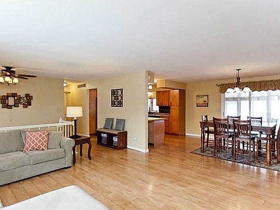 Absolutely beautiful home located on a wooded cul-de-sac. Owners have updated the furnace, A/C, water heater, flooring, paint and fixtures. A new roof & gutters were installed in 2014. Lovely open floor plan with completely new kitchen with butcher block island, copper backsplash, skylight and new appliances. Kitchen opens to an extra large dining area with a sliding door leading to the beautiful three seasons porch. The great room has a gas fireplace with an impressive brick surround. Large master bedroom looks out to the private backyard. Light and bright lower level rec room has another gas fireplace and a wall of windows. The lower level full bath is also newly remodeled. Enjoy the terrific fenced yard with many mature trees. Welcome home!