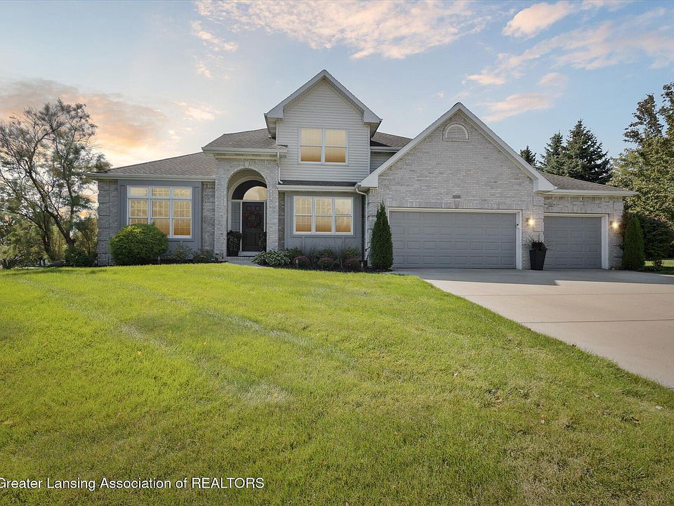 Welcome to this beautifully updated home set on a sprawling corner lot in desirable Springbrook Hills. With nearly 2,900 sq ft of finished living space, this property blends timeless elegance with modern upgrades. The exterior impresses with a carefully manicured lawn maintained by a commercial-grade irrigation system, a spacious deck with built-in speakers, and mature evergreens that provide both privacy and charm. Step inside to a grand 2-story foyer, accented by a stately column and vaulted ceilings. The entire first floor has been updated with stylish vinyl plank flooring, creating a fresh, modern look. The main level showcases an open formal dining room with tray ceiling, modern kitchen (with beautifully updated cabinets, countertops, and appliances), a versatile home office/flex room and a great room with vaulted ceilings, display shelf, and gas fireplace. The highlight of the home is the first-floor primary suite, offering the convenience of single-level living with the primary suite, laundry room, and office all on the same floor. The private bath has been completely remodeled, featuring a gorgeous walk-in tile shower, dual vanities, and a spacious walk-in closet. Upstairs, you'll find three generous bedrooms and a full bath. The partially finished lower level expands your living space with a recreation room, daylight windows, and a wet bar plus storage and roughed-in plumbing for a future bath. The 3-car garage is also wired for an electric vehicle! As part of the Springbrook Hills community, enjoy access to tennis, pickleball, and basketball courts, soccer fields, a playground, pavilion, and more. This home offers the perfect combination of modern updates, main-floor living convenience, and neighborhood amenities...a true must-see in one of the area's most sought-after communities.