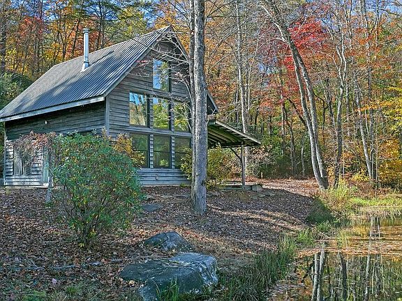 This Scandinavian inspired home seamlessly merges with the surrounding environment and is flooded with natural light. The clean lines and ample outdoor living space allows you to enjoy the mountain views and tranquility of the pond. The interior of the home features radiant floor heat, concrete floors and countertops, custom tile work a wood burning stove and open concept floor plan with soaring ceilings in the living room. The property consists of 2 parcels of gently lying land totaling 9.75 acres with Diamond Creek running through the property and a trail along side the creek. The land is a blend of woods and pasture with two small barns on the property perfect for your horses or other livestock. There is an additional power meter, well & septic system installed at the top of the property for 2, 3 bedroom homes. This home is located 1/3 of a mile from the Piney Mountain Trail access in Pisgah National Forest and 13 miles from Downtown Brevard. Heat source is radiant floor heating.