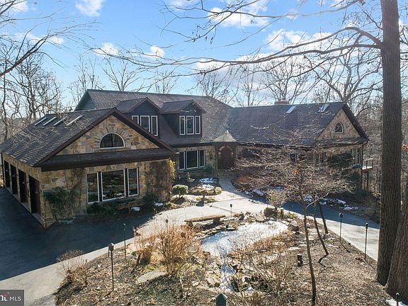 From the moment you walk through the solid cherry entry door your eyes will feast on best-in-class architecture and through floor to ceiling glass affording 270-degree views of Mother Nature's finest work beyond. Indescribably beautiful custom built 5 Bedroom, 6 Bath luxury home set amidst stunning landscaping, gardens and Brazilian mahogany wraparound deck overlooking 6 terraced bluestone patios backing to the 17th hole at River Downs. Stunning interiors, custom finishes, superb built-ins, the finest materials including cherry, oak and clear pine. Incredibly thoughtful design both inside and out. Breathtaking main level Primary Suite with vaulted reclaimed tin ceilings, Sitting Room/Office with fireplace and spa Bath. Soaring Foyer with cherry bookcase, vaulted Living Room/Great Room with window walls, cherry paneled Library with fireplace. Sitting Room flows to Living Room and cook's Kitchen with granite, top appliances including Wolf, Sub-Zero and Bosch and opens to sunny Morning Room. Banquet-size formal Dining Room. 2nd floor Sitting Room enjoys open views of the Foyer with cherry built-ins and Living Room. 3 large Bedrooms- 2 with Lofts, 2 Baths and a 46-ft Bonus Room complete the 2nd Level. Extraordinary walk-out lower level includes Family Room with kitchen, wet bar, fireplace and full Bath plus Bedroom 5 and Bath- all finished out in clear pine and maple hardwood flooring. Beautifully landscaped 4.14 acres partially wooded acres with extensive landscape/exterior lighting, stepping-stone footpaths, drystack stone garden walls and firepit. Adjacent to conservation land and backs to River Downs and short stroll to the Middle Branch of the Patapsco River. Bucolic privacy only 2 minutes from Baltimore County and a 200-foot walk to the 17th green.