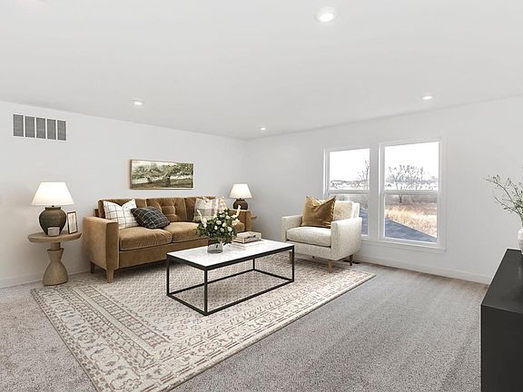 Trendy new Jensen floorplan by Fischer Homes in beautiful Riverdale featuring a welcoming covered front porch. The island kitchen offers stainless steel appliances, upgraded cabinetry with 42-inch uppers, granite countertops, large walk-in pantry, and is open to the morning room which walks out to the 16x14 deck, the large family room with fireplace, and included rec room. Formal living room. Upstairs oversized homeowners retreat with an en suite that includes a double bowl vanity, garden tub, shower, and walk-in closet. There are 3 additional bedrooms each with a walk-in closet, 2nd-floor laundry, and a spacious loft. Full walk-out basement with a full bath rough-in and a 3 car garage.