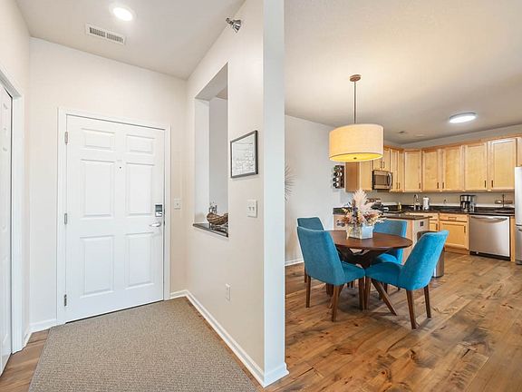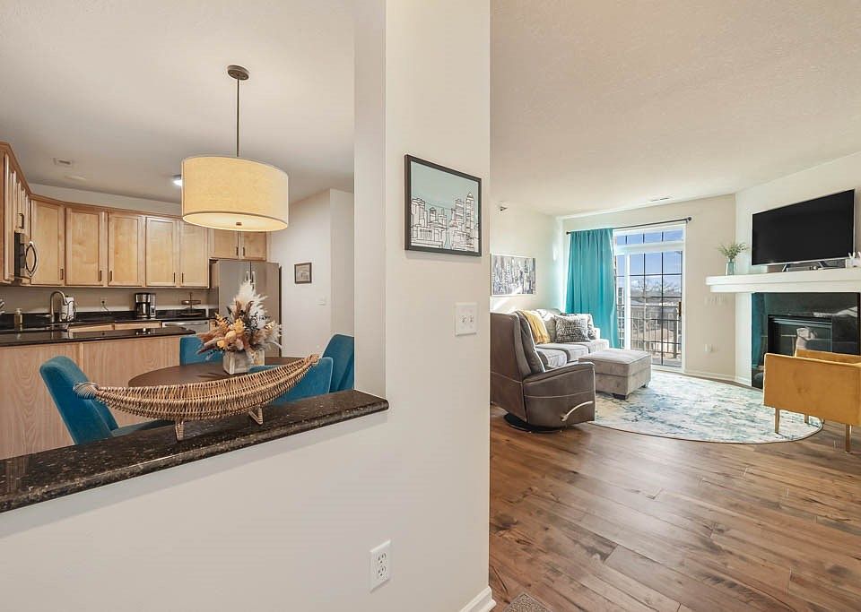 Welcome to this perfectly maintained two-bedroom condo, where an inviting open floor plan greets you with a cozy gas fireplace and a kitchen adorned with granite countertops and sleek stainless steel appliances. Recent upgrades include fresh paint, soft-close cabinets, and new hardware in the kitchen, as well as modern lighting fixtures and ceiling fans throughout. Additional enhancements feature a Nest thermostat, Schlage remote door access, and cellular shades in both bedrooms, complemented by a new water heater installed in 2022 and an HVAC system upgraded in 2021. The building boasts convenient amenities such as an elevator, community room, heated garage, and underground parking. Enjoy the eastern facing balcony with wonderful natural light, perfect if your a green thumb. Located near the interstate, popular dining venues, grocery stores, bike trails, Water Works Park, and Grays Lake. Monthly dues include essential services like trash removal, lawn care, water, security, heated underground garage access, and storage space, alongside subsidized cable and internet. Investor-friendly and pet-welcoming, with provisions for one dog or two cats weighing up to 35lbs each.