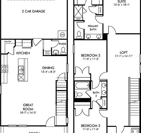 Welcome guests on the charming front porch. Inside, the open-concept main level features a spacious great room. Linen cabinets, smoky grey granite countertops, grey cool tone EVP flooring, and textured carpet in our Cool package.