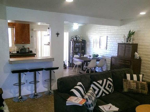 Great central location 2 miles N or University. A/C, quiet walkable neighborhood near Mountain Ave Bike Path, Walk to Campbell Plaza shopping & restaurants. Open & spacious unit feels like a home with front and back patios & fenced yard. Remodeled with recessed lighting, ceiling fans, tile floors & counters. 2 car off-street parking. 1st month + 1 month security deposit. Small pet considered. Owner pays trash, sewer, water
