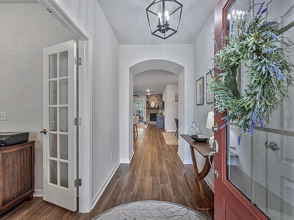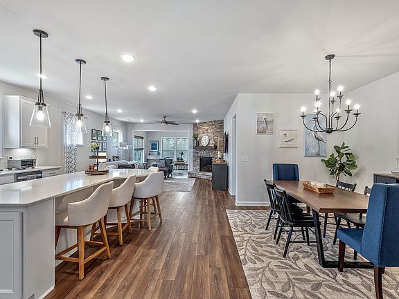 Welcome to your dream home in the prestigious Del Webb 55+ community! This stunning one-story residence, only a year old, boasts 3 spacious bedrooms, 2 full bathrooms, a dedicated home office, and a delightful sunroom. The heart of the home is the beautiful kitchen featuring a large island, quartz countertops, gas stove, and stainless steel appliances, perfect for culinary enthusiasts. The inviting great room with a stone fireplace provides a cozy space for relaxation. The primary bedroom includes a custom closet system for optimal storage, and the home is equipped with a whole house water filtration system. Designed with luxurious vinyl plank flooring throughout, this home ensures a seamless, carpet-free environment. Outside, enjoy a private, fenced-in yard, a screened-in porch perfect for enjoying the outdoors without the bugs, and a 2-car garage. This home blends modern luxury with active community living, offering comfort and excitement—experience the Del Webb lifestyle!