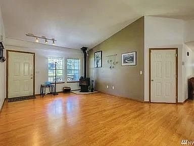 Immaculate 3 bedroom, 2 bath Rambler on large fully fenced lot! RV & boat parking w/10 x 12 outbuilding! Spacious open floor plan! Feels bigger than 1396 SQ FT! Large living room w/wood stove & vaulted ceiling, dining room, spacious kitchen w/lots of cabinet space & breakfast bar, family room w/access to deck, new laminated hardwood floors, newer interior & exterior paint, large master bdrm w/bathroom & walk-in closet, good size 2nd & 3rd bedrooms, 430 SQ FT multi-level decks & sprinkler system