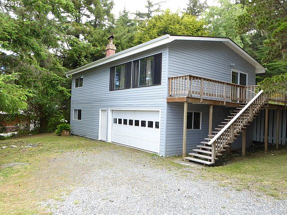 Well kept, ocean view home offers a lot of living area for a reasonable price! Upstairs, the vaulted tongue-and-groove ceilings add a sense of spaciousness throughout, including the living room, kitchen, two bedrooms, and bath. Downstairs are two more bedrooms, a second bath, and a large 2-car garage with laundry area and plenty of room for a workshop. Outside, the deck allows enjoyment of the private, fully-fenced landscaped yard.