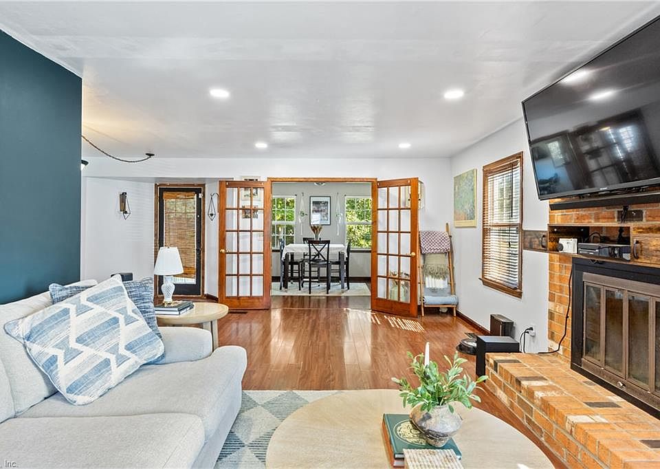 This cape cod home is stylish, serene and spacious! Tucked away on a quiet dead end street with a cul-de-sac, 3032 Barn Way welcomes you home. The flexible layout offers the option of a first-floor primary suite with full bath or a private retreat upstairs. The main level features an open kitchen with all appliances conveying and a formal dining room with French doors. It's great for gatherings or as an office overlooking the backyard. Step outside to a generous yard that meets a small creek flowing to Deep Creek, creating a peaceful natural backdrop for your dog to run zoomies or family gatherings in the summertime. Inside, the home reflects a vibrant spirit and invites you to create your own cozy moments here too. Nestled in Old Mill Landing, this established neighborhood has no monthly fees. It's convenient to the interstate for easy access across Hampton Roads. Your next chapter starts here!