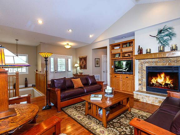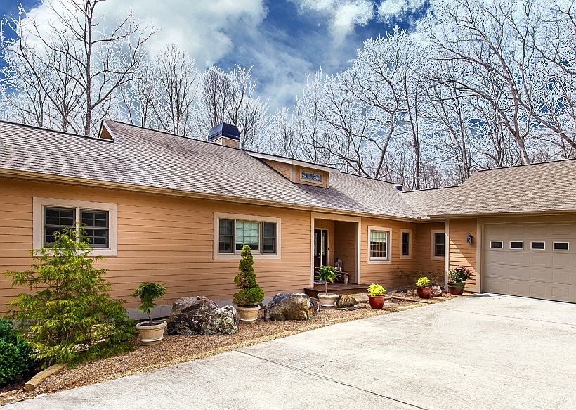 This elegant home has it all.... gleaming hardwood floors, vaulted ceilings and a wide open floor plan. The rock fireplace is flanked with built-in shelving which beautifully anchors the living room. Sliding doors lead to the spacious 3-season porch which faces the wooded back yard with winter ridge views. The 1.13 acre lot is bordered by greenspace for added privacy. Custom tile, high end cabinetry, newer appliances make this gourmet kitchen appealing to the fussiest of cooks. The master suite is located conveniently on the main level, with a huge walk in closet / dressing room and custom tiled bath with double vanity. The other bedrooms, second living room and full bath are located on the lower level delivering space & privacy to guests. This home delivers elegance, a great location within Connestee only minutes from the clubhouse, a triple lot with a private wooded back yard. New residents to Connestee pay the one time $8K amenity fee to enjoy the many Connestee Falls amenities.