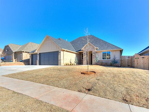 YOU WON'T WANT TO MISS THIS BEAUTIFUL NEW HOME! AMAZING FINISHES AND GREAT LOCATION EAST EDMOND. 4TH BEDROOM/ OPTIONAL STUDY, 2 LIVING AREAS (GAME ROOM) AND 2.5 BATHS. THE GREAT ROOM HAS CATHEDRAL CEILINGS WITH A FIREPLACE THAT REACHES THE WOOD BEAM, LOTS OF WINDOWS FOR NATURAL LIGHT, A SPECTACULAR KITCHEN WITH CABINETS ALL THE WAY TO THE CEILING, A 10 FT ISLAND, GAS COOKTOP, DOUBLE OVENS,BUILT IN SPICE RACKS, WALK IN PANTRY WITH POCKET DOOR AND A BUILT-IN COFFEE/WINE BAR AREA. THE MASTER SUITE/ SPA IS SO BEAUTIFUL! YOU WILL FEEL SO SPECIAL! SUCH A GREAT PLACE TO RELAX. THE DOORLESS WALK IN SHOWER IS HUGE AND THERE IS PLENTY OF SPACE IN THE CLOSET FOR ALL OF YOUR ITEMS AS WELL AS BUILT IN DRAWERS. THE SECONDARY BEDROOMS ARE NICE SIZED AND HAVE SPACIOUS CLOSETS. THE BACK YARD IS LARGE AND BACKS TO A GREEN BELT AREA WITH LOTS OF MATURE TREES. ENJOY THE VIEW OF NATURE WITH ROD IRON FENCING ALONG THE BACK. THE COVERED PATIO IS LARGE AND FACES SOUTH, THE PERFECT PLACE TO HAVE FUN YEAR ROUND, COOK OUT AND RELAX. QUALITY CRAFTSMANSHIP BY ESTABLISHED BUILDER. HOA HAS A POOL AND PARK AND SPECIAL DOG PARK AREA. JUST 2 MILES FROM I-35, SHOPPING, HOSPITALS, GOLF, EDMOND SCHOOLS. BRENT GIBSON DESIGN. FULLY SPRINKLED. MOVE IN READY! HURRY