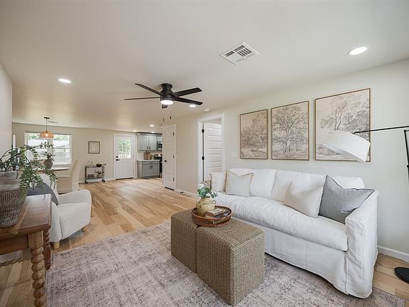 A completely renovated dollhouse in Biltmore Estates- a charming pocket located at NW 63 & May! This home was taken down-to-the-studs - it's essentially a brand new residence. A jovial exterior with white painted brick, new driveway & covered front porch makes for a welcome arrival. An impressive open concept floor plan greets you at the entrance- showcasing new windows, allowing wonderful natural light throughout all rooms and beautiful engineered hardwoods. A spacious dining room can host events for loved ones! And the kitchen- simply gorgeous. New ceiling height cabinetry, stainless appliances, quartz counters & tons of recessed lighting. The master suite is located at the west end of the home & has an attached full bathroom. Secondary bedrooms enjoy convenient access to the hallway bathroom - complete with double sinks. The backyard provides room to roam & play & features a wood deck. Impactful upgrades include new roof, HVAC system + duct work, electrical wiring + panel, water heater & plumbing in the home - all completed in 2025. Truly the most convenient location in all of NW OKC- just seconds to grocery stores, fine dining, Lake Hefner, highways, hospitals and downtown!