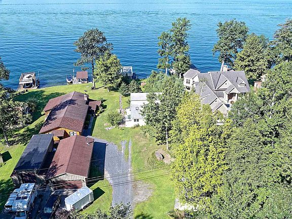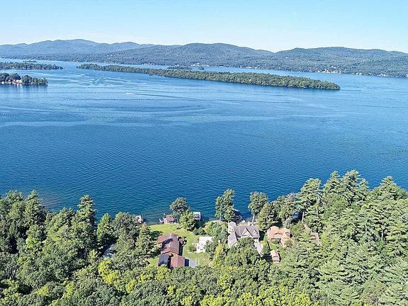 Amazing opportunity to live on the most desired section of Lake George--Kattskill Bay! Incredible lakefront property boasting spectacular panoramic views of Lake George and the Adirondack Mountains with 81' of level frontage! Private road leading to lush property complete with dock and sundeck. Enjoy year-round living in this tranquil setting with breathtaking south-west sunset views from the 2100 square foot rustic home featuring a wall of windows sunroom and large patio flanked with slate. Detached 2-car garage. Lower taxes and award-winning Lake George Schools. Currently being sold virtually/digitally. Fall in love with Lake George! BACK UP OFFERS ACCEPTED!