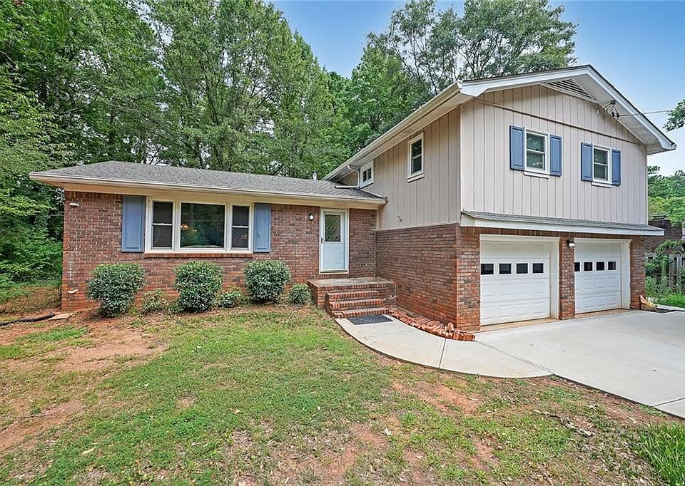 Exceptional opportunity for this charming 4 bedrooms,2.5 bathrooms, brick split-level home in highly rated Pope High School with plenty of room. Brand new driveway and sidewalk to front and garage side doors. Newer 25- year roof, HVAC, windows and more. Just needs some cosmetic love. 4 bedrooms upstairs. Formal dining and living room along with kitchen and breakfast area on main level. The lower-level family room has a brick fireplace, half bath next to garage and newer double doors to the back patio. Laundry room/area in the garage. Large ½ Acre level yard. This functional home is perfect for multi-generational families or guests seeking privacy. Close to Mountain View Aquatic Center, shopping, restaurants and much more. You can walk to Pope High school.