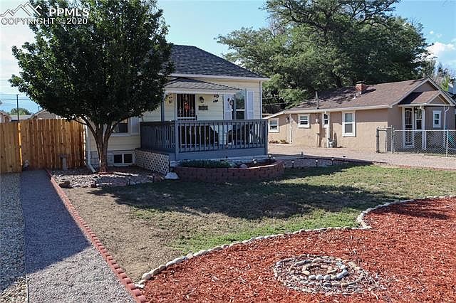 Welcome home! Don't miss out on this unique, historic home in the heart of the Springs. Close to downtown and I-25, this well kept ranch style beauty, has plenty to offer! Updated bathrooms, new lighting, ceiling fans, door hardware, fresh paint inside, and a brand new Timberline roof. On the toplevel, the master bedroom has an attached 3/4 bathroom, separate dining room with built-in hutch, second full bathroom and kitchen with new, stainless steel appliances. Original oak floors under carpet on main level. The basement offers a second living area, 2 more bedrooms, a convenientlaundry closet and a utility room with energy efficient furnace. You will notice the meticulous care, and love the home owner has put into the front, and back yard of the home recently. Take in the aroma of the apple blossoms on the front, partially covered deck. The impressive maintenance free gravel driveway gives plenty of room for an RV, boat or recreational vehicles. The picture perfect backyard is ideal for entertaining. After a long day, enjoy a view of the Peak from the xeriscaped, back yard with deck and shed.