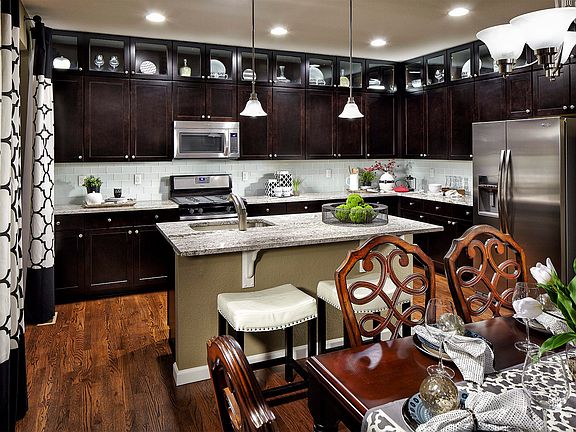 Stylish kitchen features upgraded cabinets, white slab granite countertops & eat-at island open to dining. Extensive hardwood flooring. A/C. Loft & upstairs laundry. Elegant master suite with coffered ceiling. Full unfinished basement with 9' ceiling.
