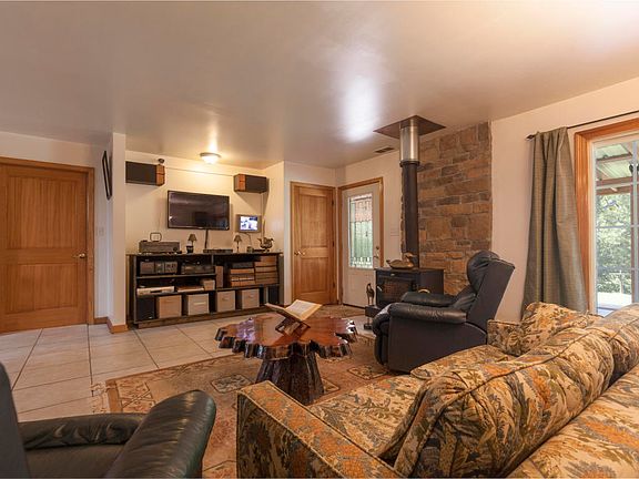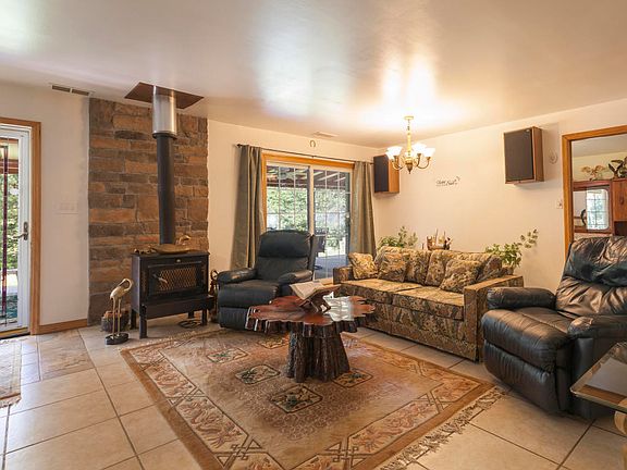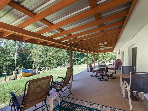 Need an escape from the world? Take a drive down a dirt road to this unique and secluded haven! This environmentally friendly concrete home, nestled within 3.5 +/- beautiful wooded acres, offers the benefits of concrete insulation (very low power bills), a solar-powered generator, a wood-burning stove, tile flooring throughout (low maintenance), and a full-length front porch for enjoying your solitude and privacy. Speaking of privacy, this home is also protected by a Swann surveillance security system! Your haven awaits - call today for your private tour!